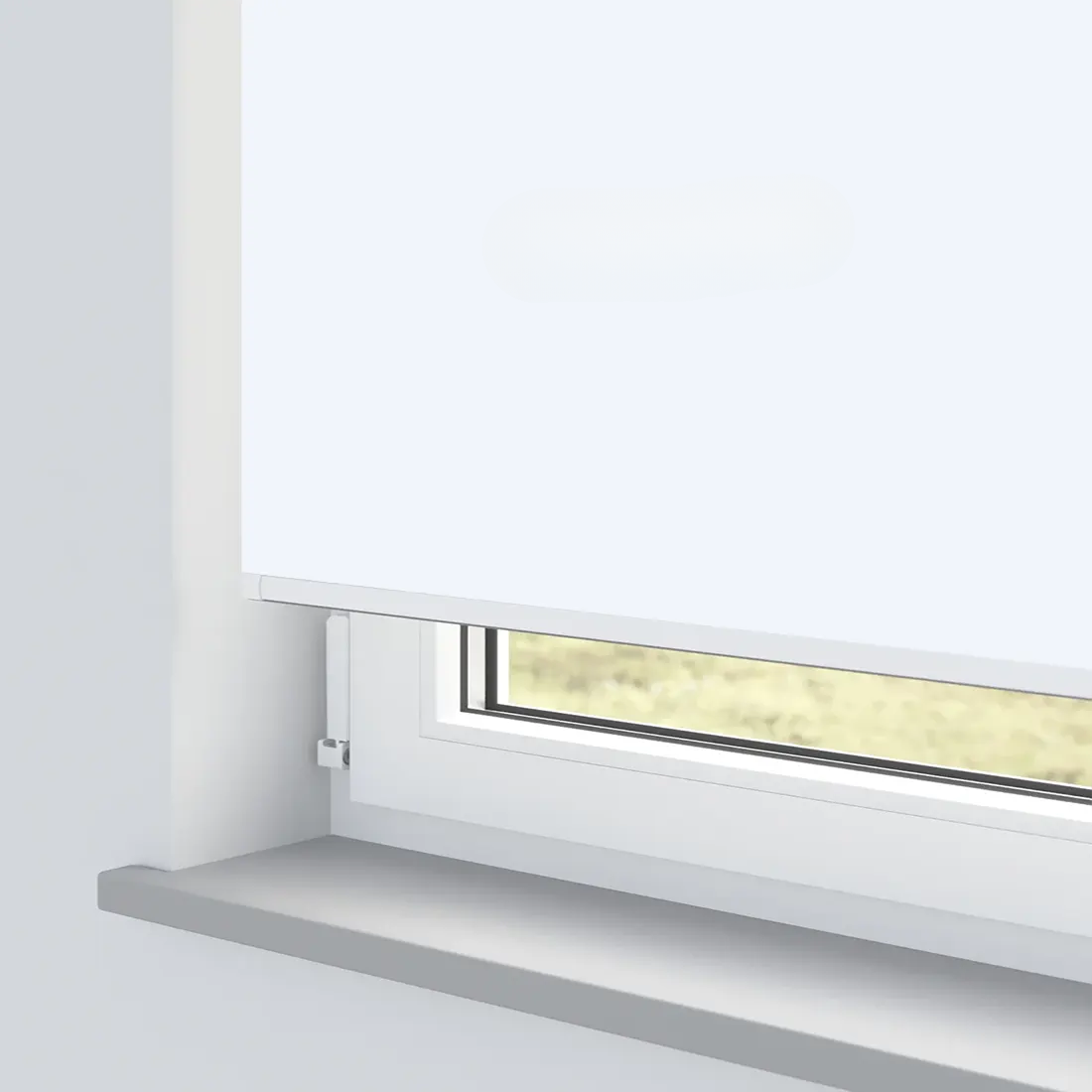 Insert the pin end of the blind into the pin-side bracket. The pin side has a spring mechanism, making mounting and removal easier. Then insert the control mechanism into the control-side bracket. The central lug should point downwards and slot securely into the bracket cross-section.